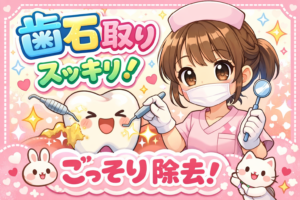 歯石取りは、歯みがきでは取れなくなった歯石を、歯科医院で専用の器具を使って取り除くケアです。