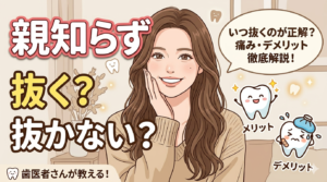 親知らずについてお悩みの方は多いのではないでしょうか。「抜いた方がいいのか、それともそのままにしておいた方がいいのか」と悩む方もいらっしゃるでしょう。また、抜かずに放置した場合のリスクについても気になるところです。ここでは、親知らずの基本情報や、抜いた方がいいケースと抜かなくていいケース、さらには放置するとどうなるかについて詳しく解説していきますね😌