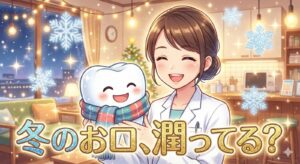 冬は空気の乾燥に加え、エアコンの使用で**「お口の中」もカラカラになりがちです。実は、お口の乾燥(ドライマウス)は、虫歯や歯周病のリスクを高めるだけでなく、インフルエンザなどのウイルス感染の原因**にもなりやすいことをご存知ですか?